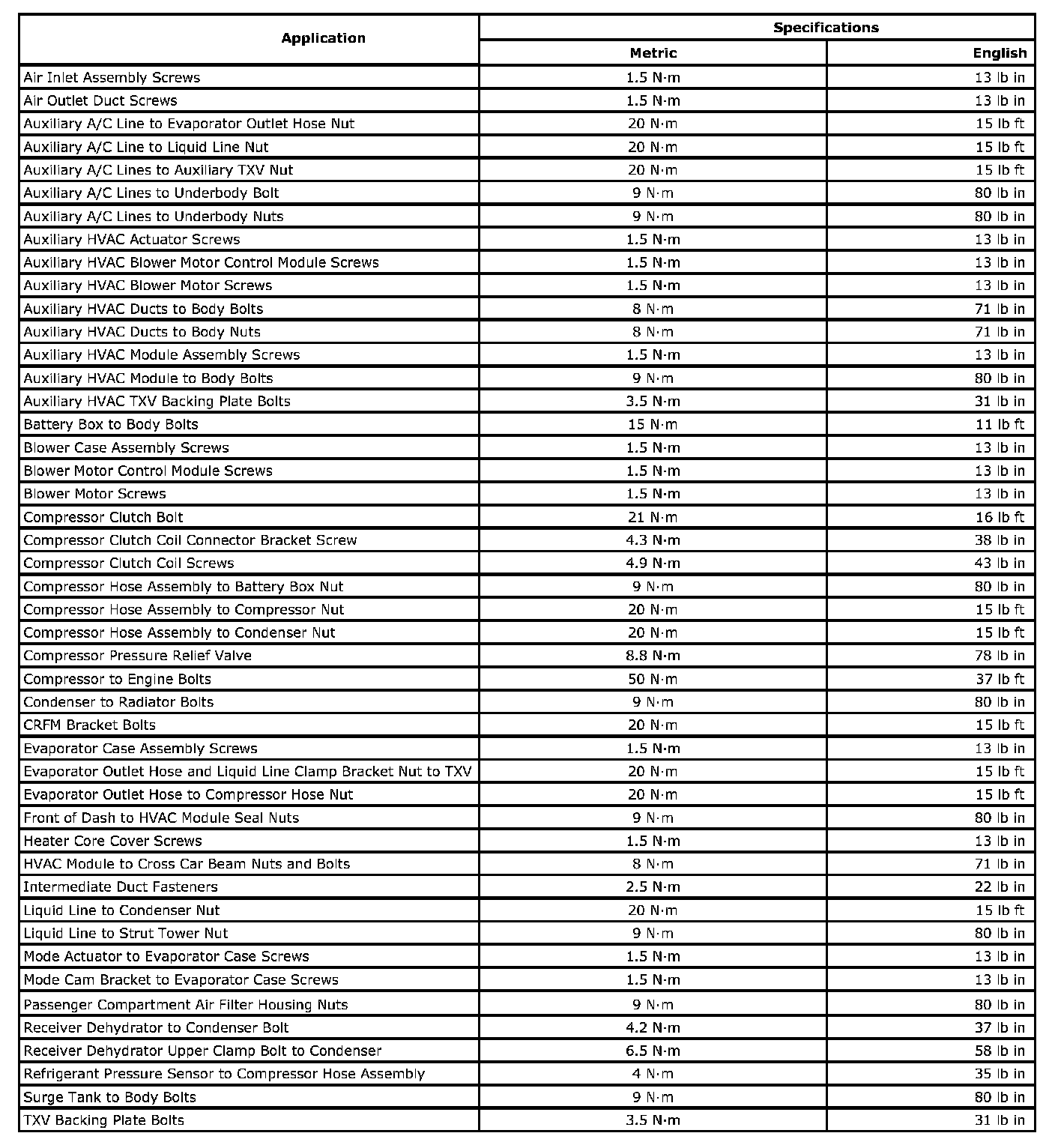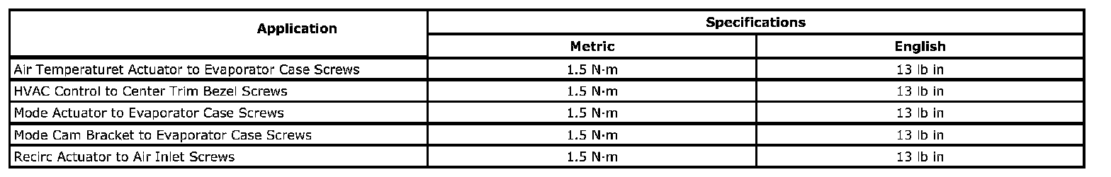 Fastener Tightening Specifications - HVAC - Automatic: