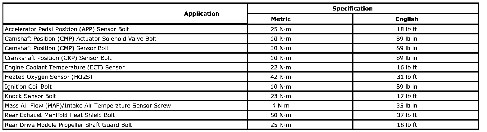 Fastener Tightening Specifications - Engine Controls - 3.6L (LY7):