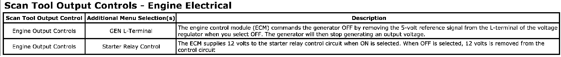 Scan Tool Output Controls - Engine Electrical: