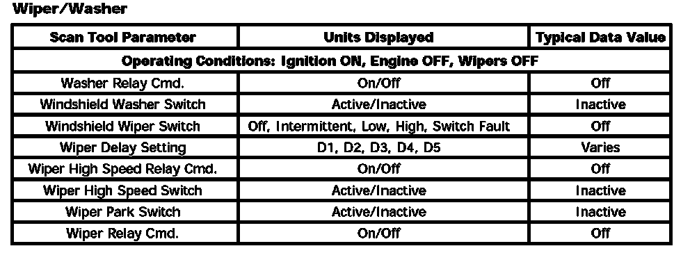 Scan Tool Data List - Wipers/Washer Systems: