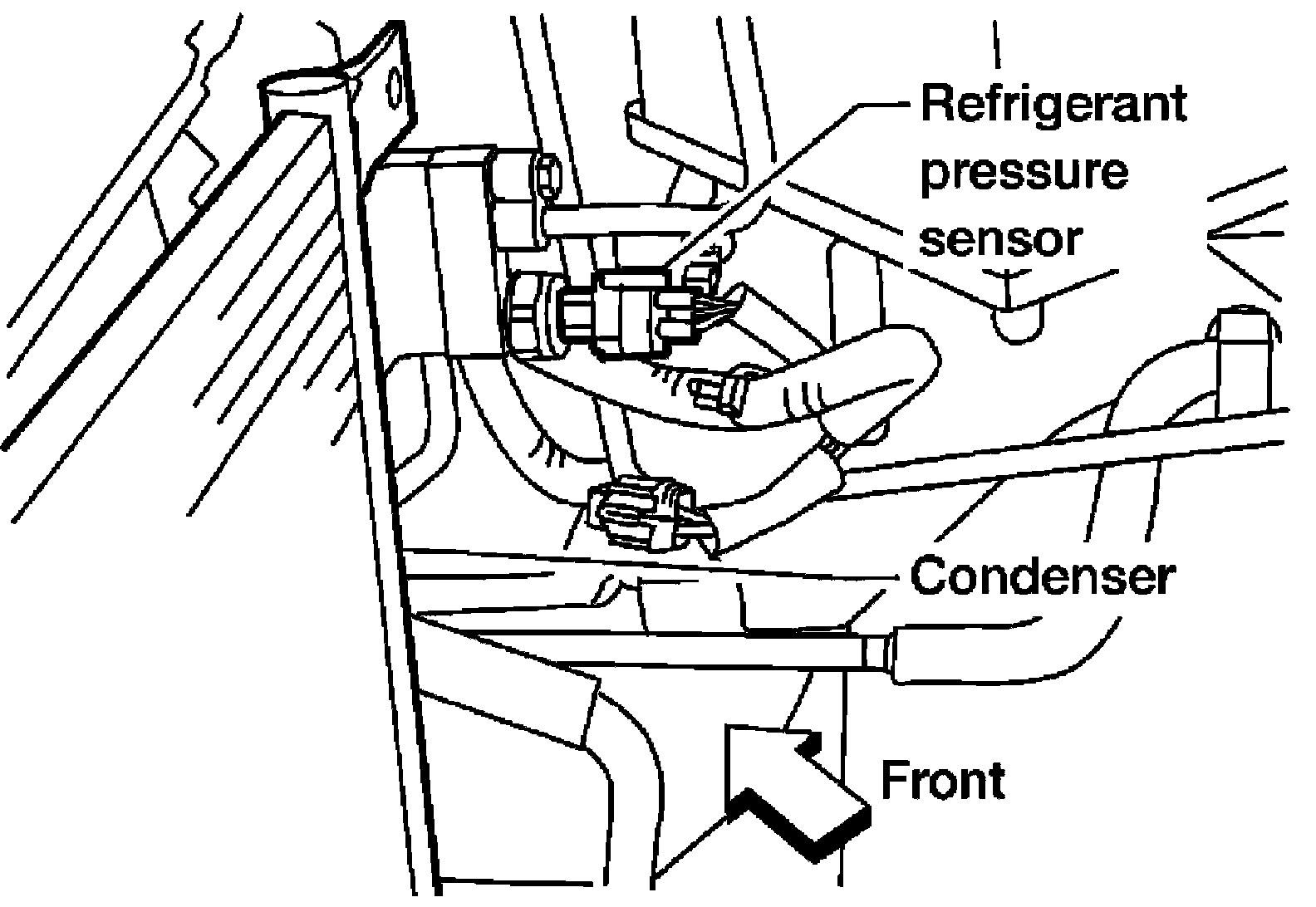 2. Disconnect the refrigerant pressure sensor harness connector and remove the refrigerant pressure sensor from the condenser.
