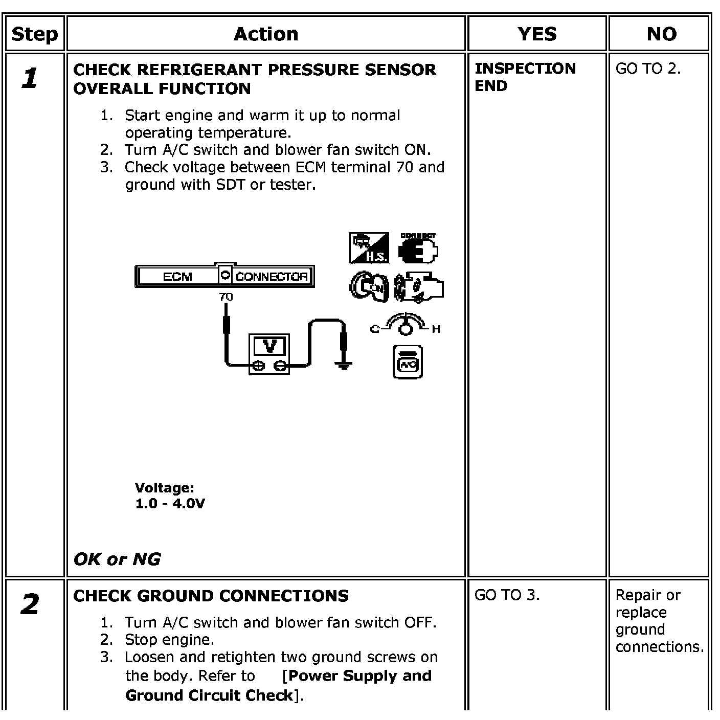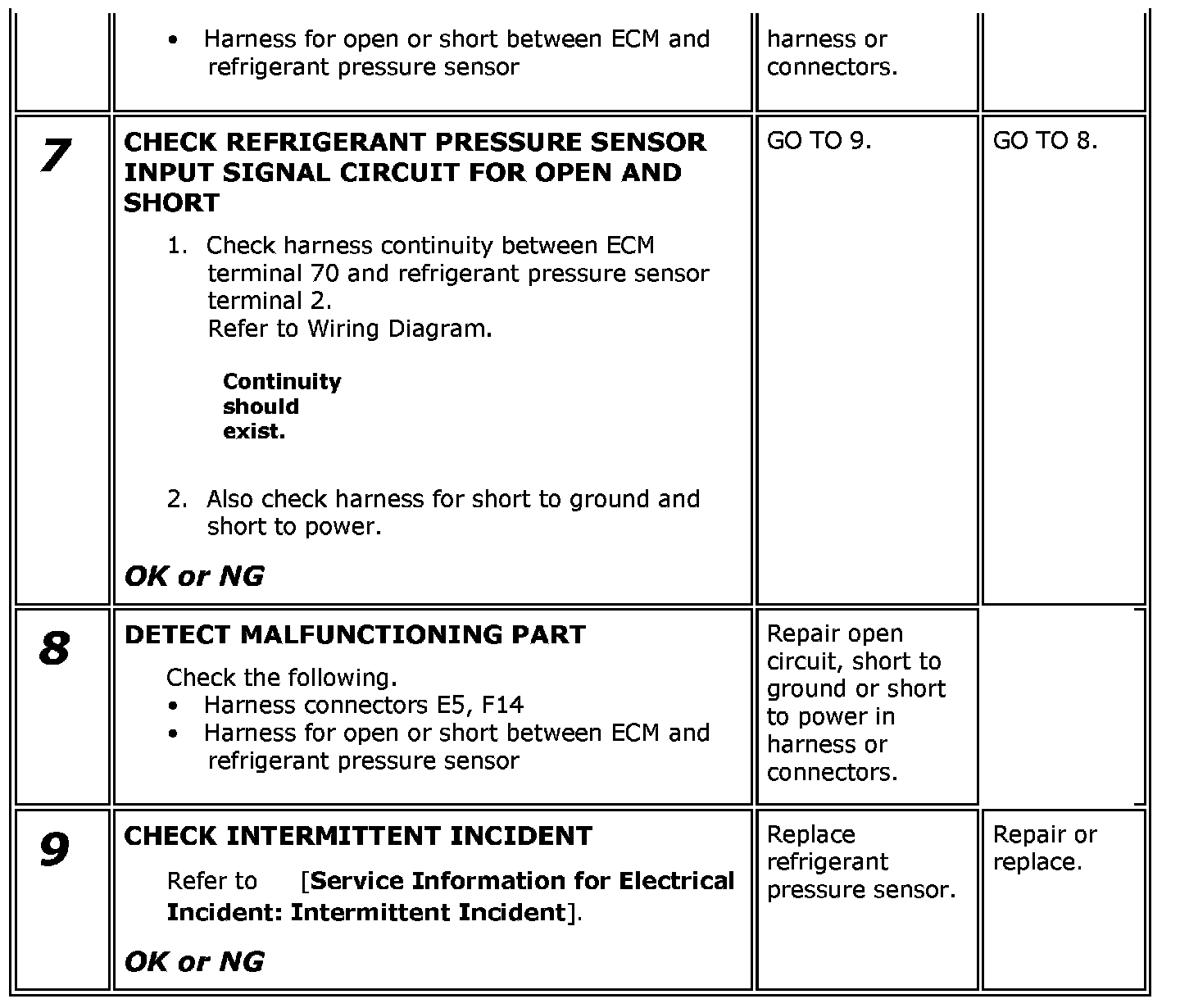 Refrigerant Pressure Sensor / Switch: Testing and Inspection