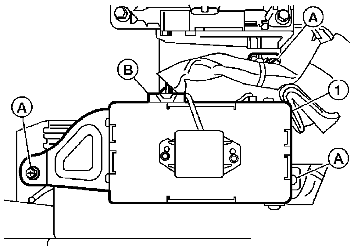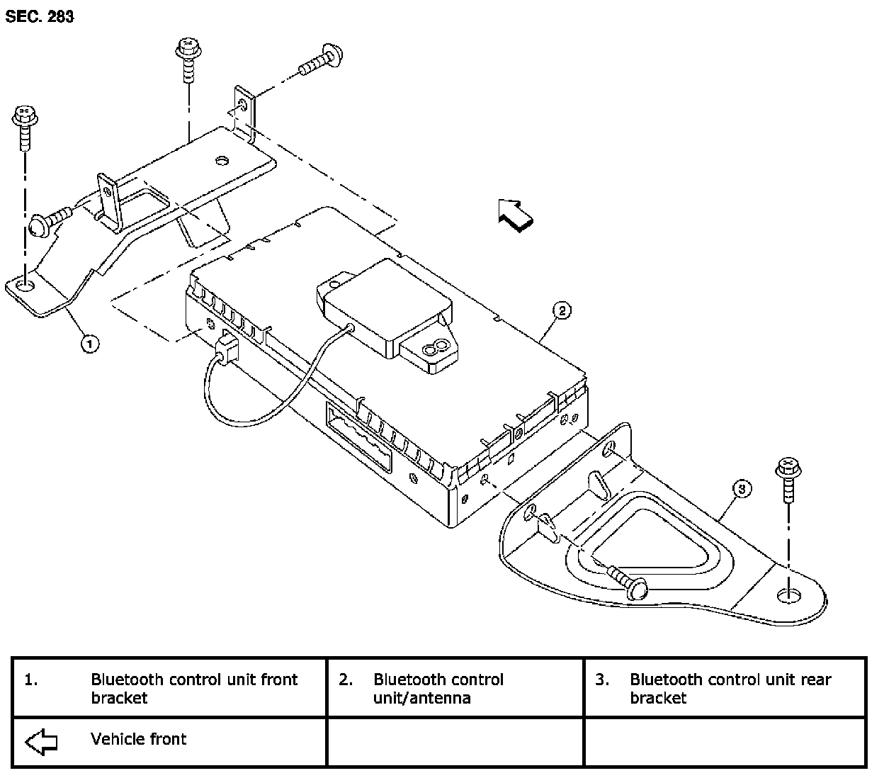 4. Remove the Bluetooth control unit bracket screws and remove the Bluetooth control unit (1) front and rear brackets.