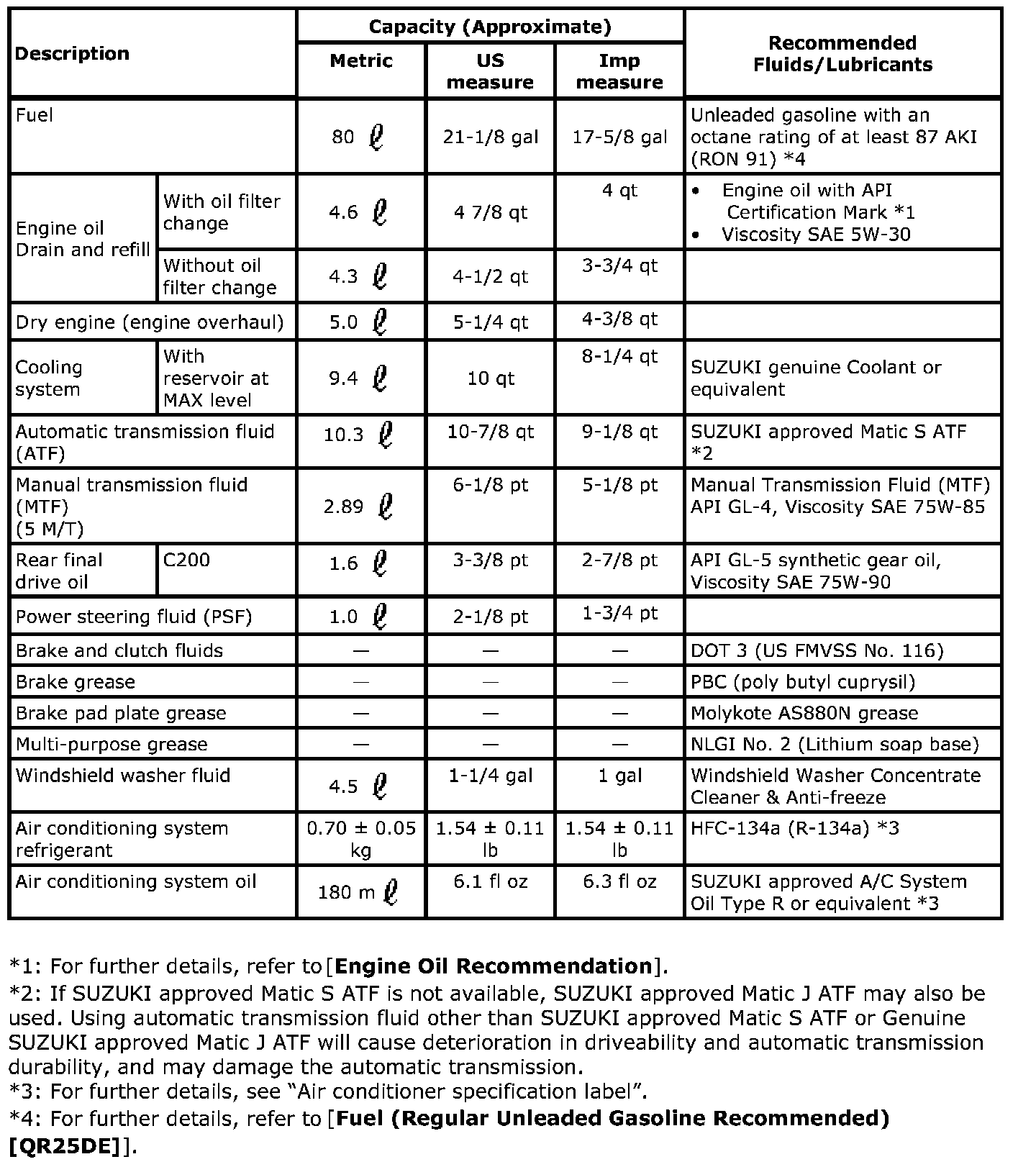 Recommended Fluids and Lubricants