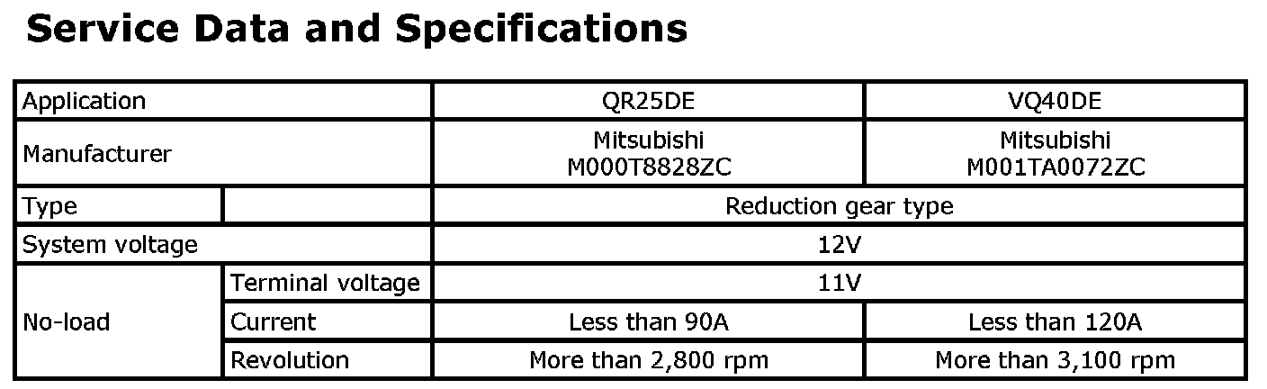 Starting System: Specifications
