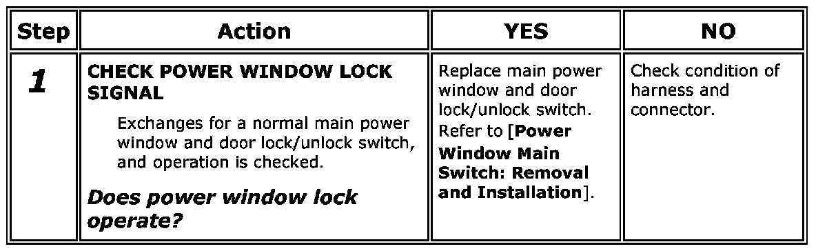 Power Window Lock Switch Circuit CheckDescription