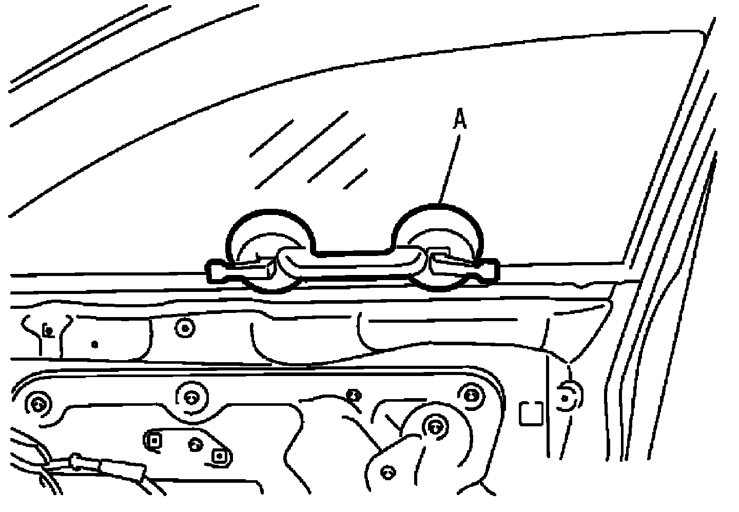 7. Raise the front door glass and hold it in place with suitable tool (A).