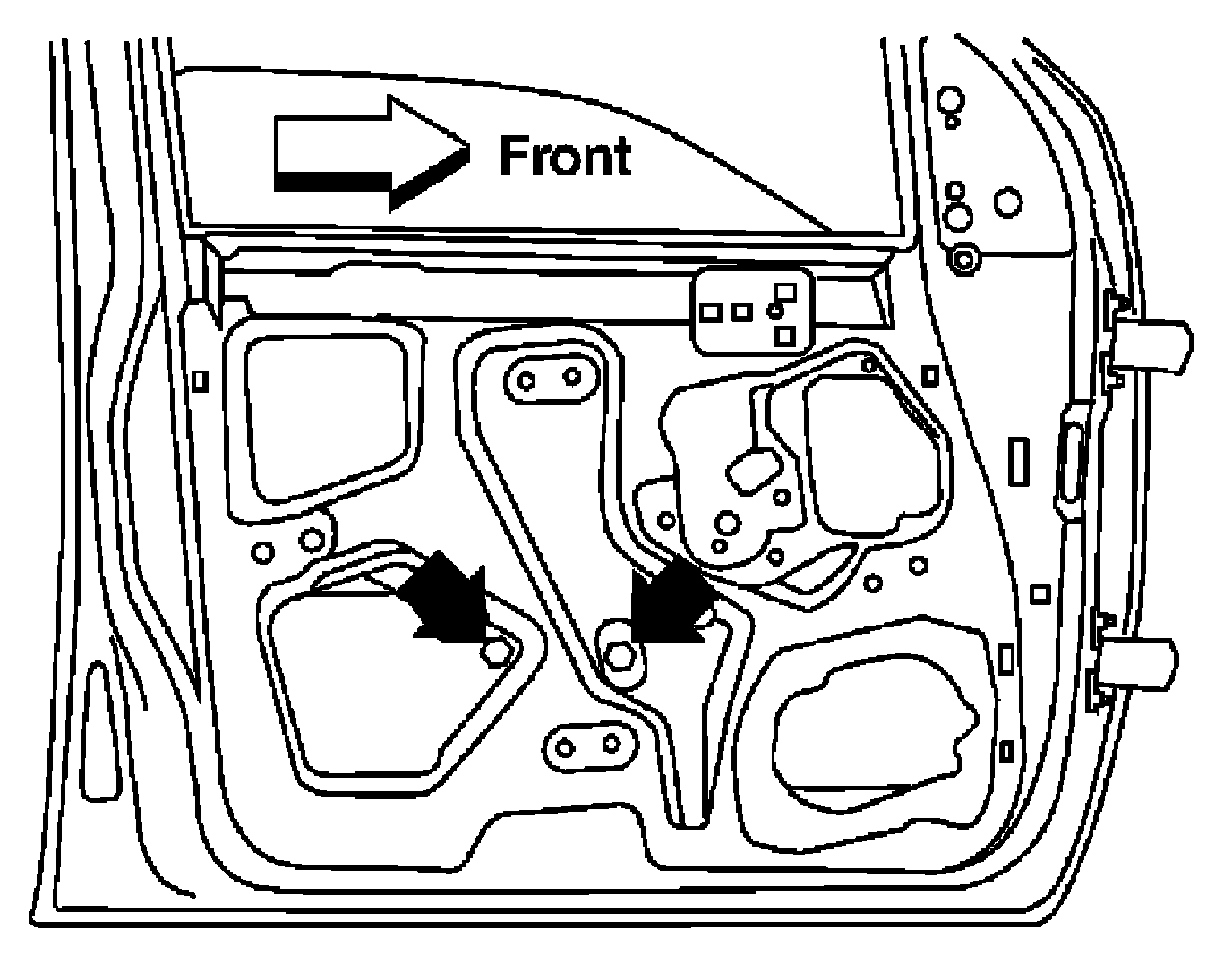 a. Loosely install the top rear regulator bolt to use along with the temporary holds on the window motor or crank assembly to install the assembly in the door.