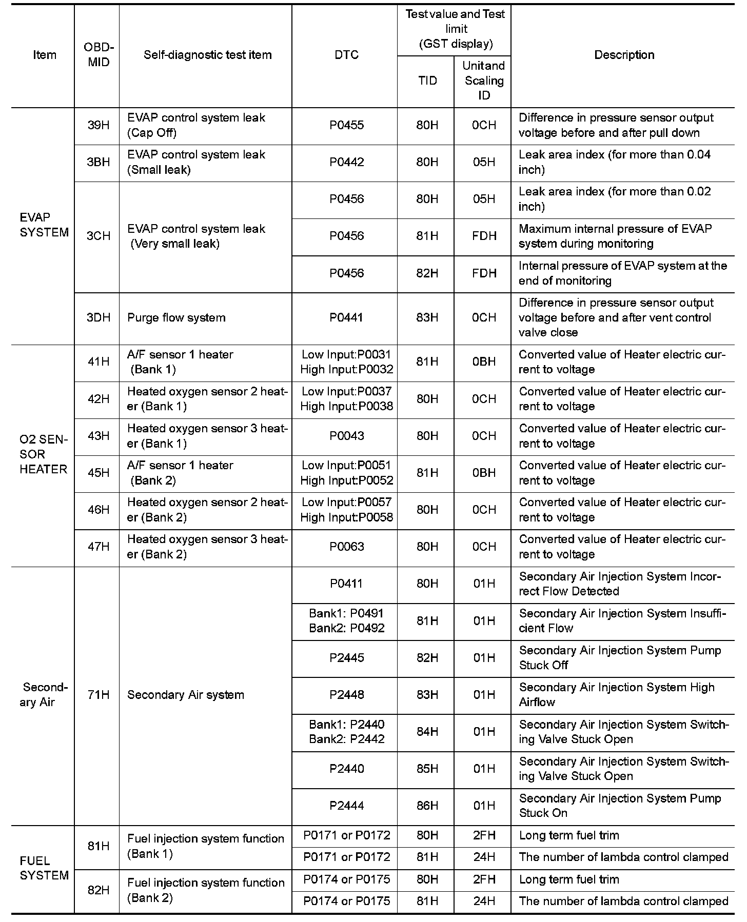 These data (test value and test limit) are specified by On Board Monitor ID(OBDMID), Test ID (TID), Unit and