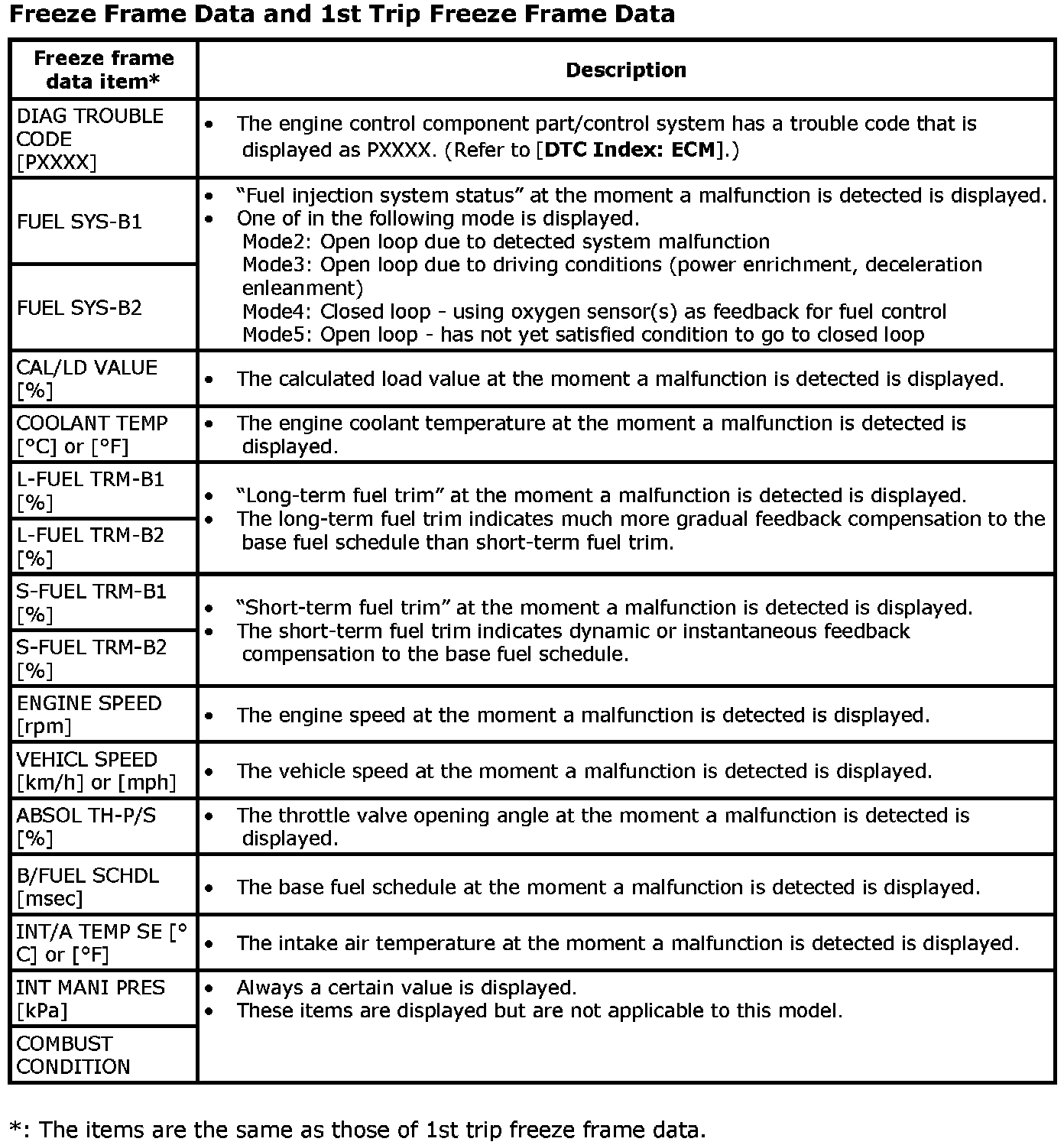 Regarding items of DTC and 1st trip DTC, refer to [DTC Index: ECM].