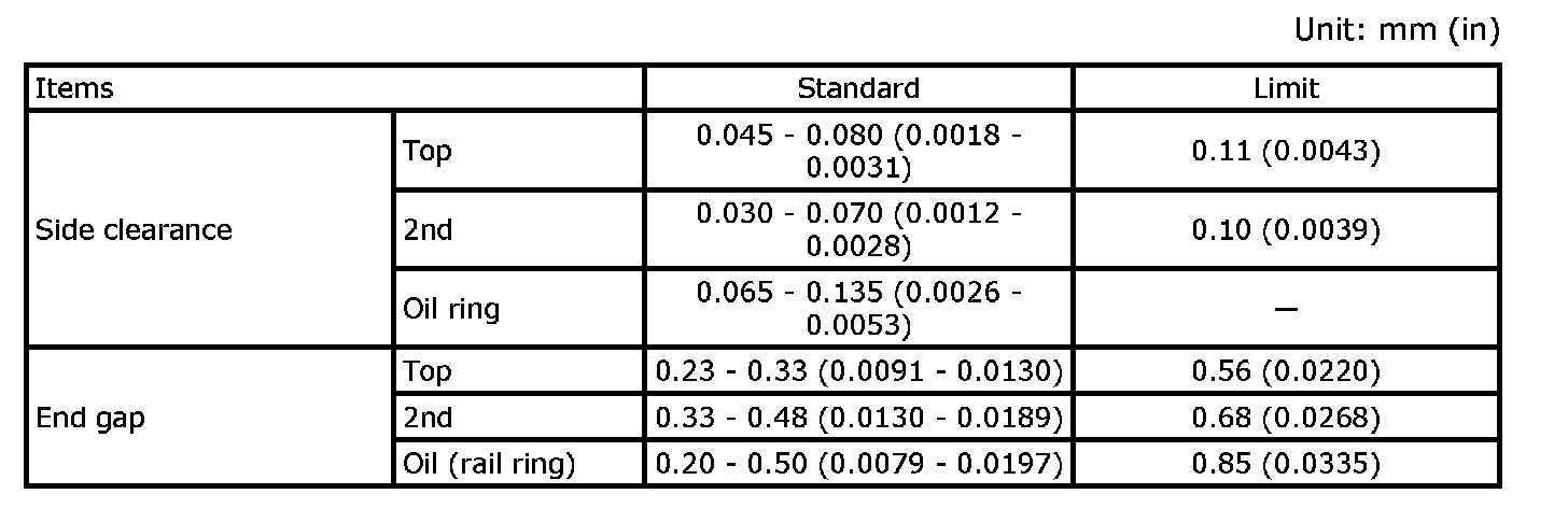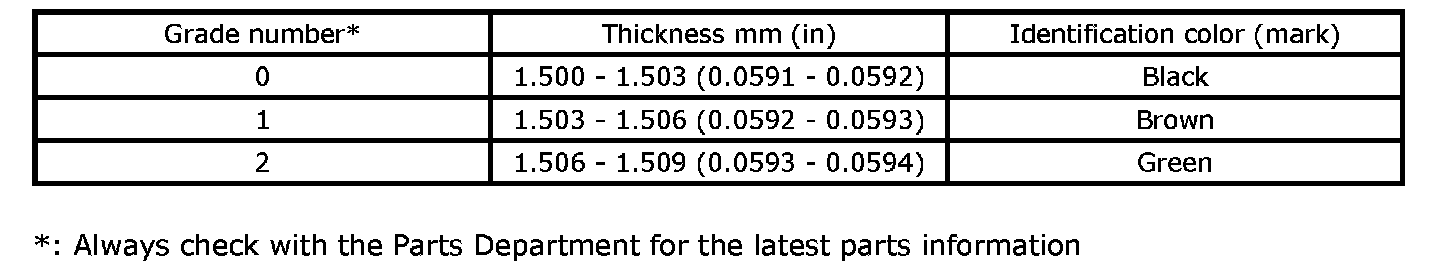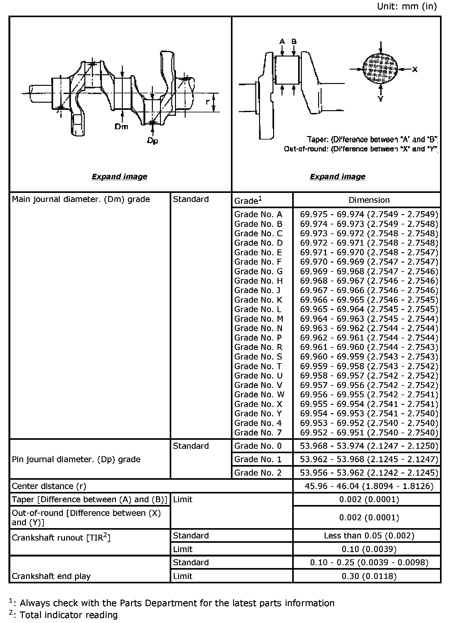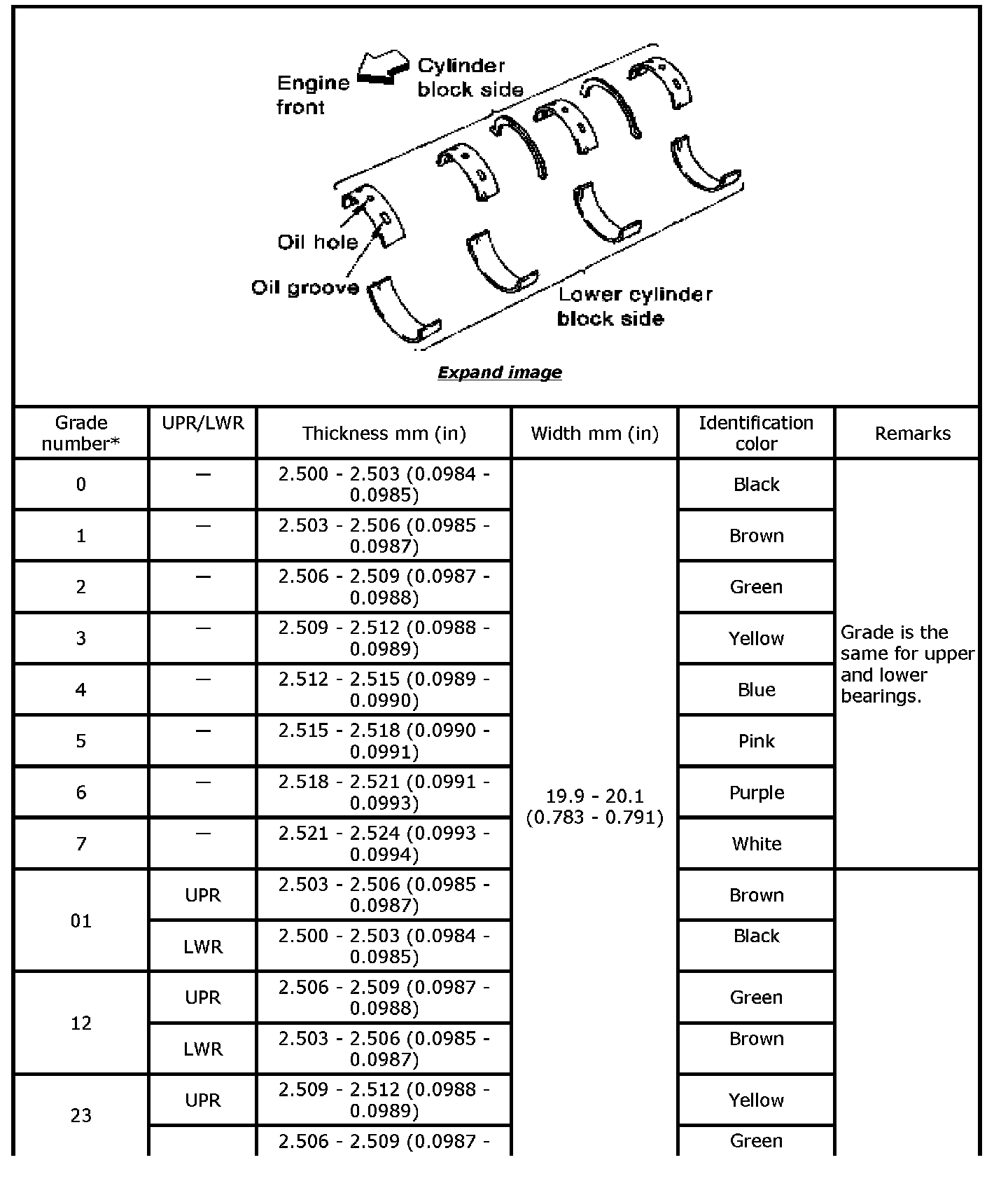 Main Bearing Grade Table (All Journals)