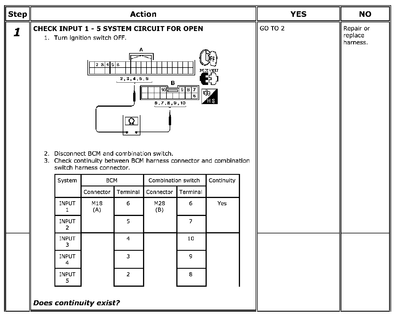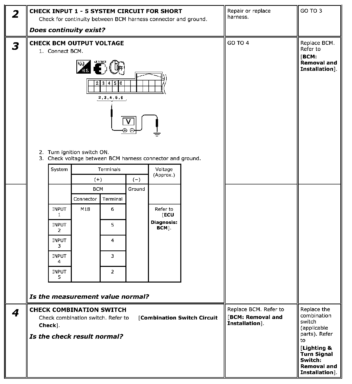 Combination Switch Input Circuit Check
