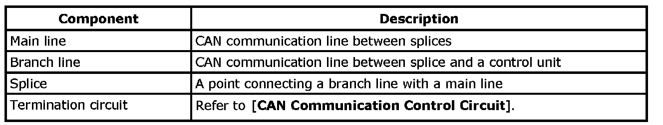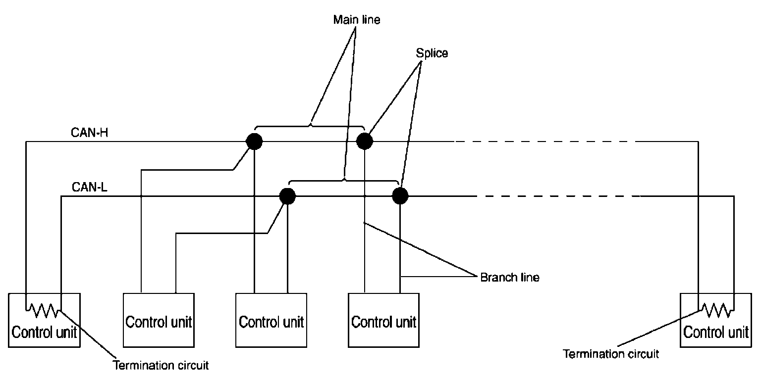 CAN Communication System: System DiagramEach control unit passes an electric current to the termination circuits when transmitting CAN communication signal. The termination circuits produce an electrical potential difference between CAN-H and CAN-L. CAN communication system transmits and receives CAN communication signals by the potential difference.