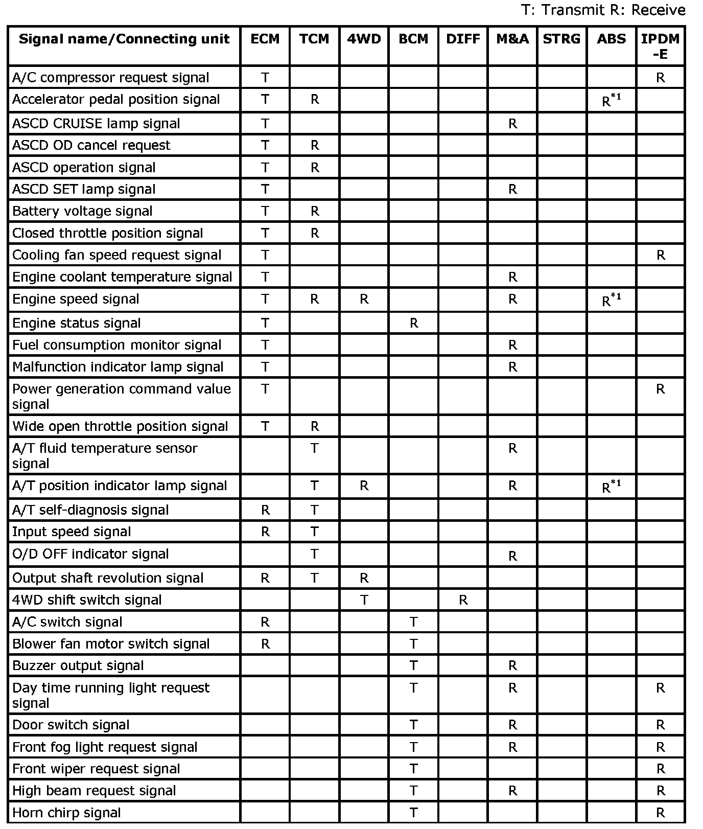 CAN Communication Signal ChartRefer to [LAN System: Basic Inspection] LAN System: Basic Inspection for how to use CAN communication signal chart.