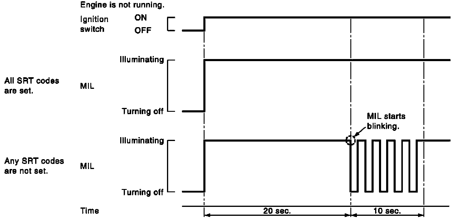- When any SRT codes are not set, MIL will blink periodically for 10 seconds.