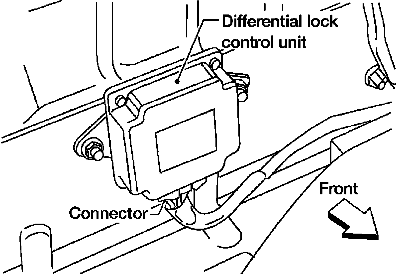 5) Reposition the carpet to access differential lock control unit to disconnect connector.