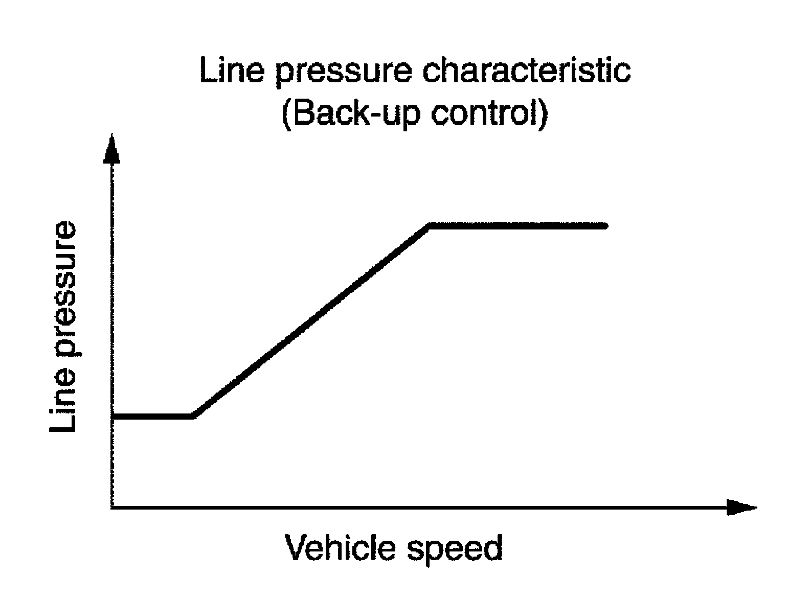 When the A/T fluid temperature drops below the prescribed temperature, in order to speed up the action of each friction element, the line pressure is set higher than the normal line pressure characteristic.