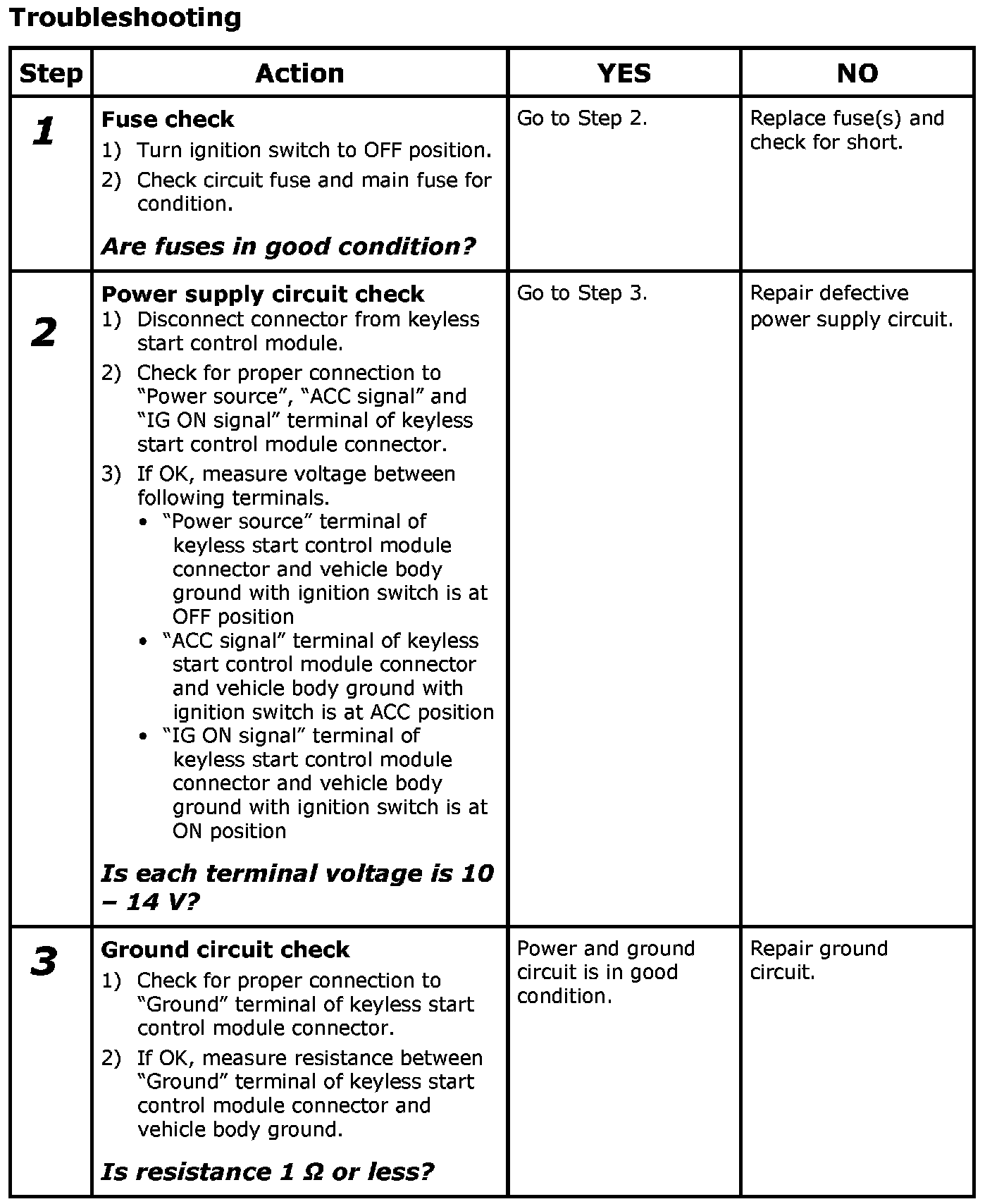 Keyless Start Control Module Power and Ground Circuit Check