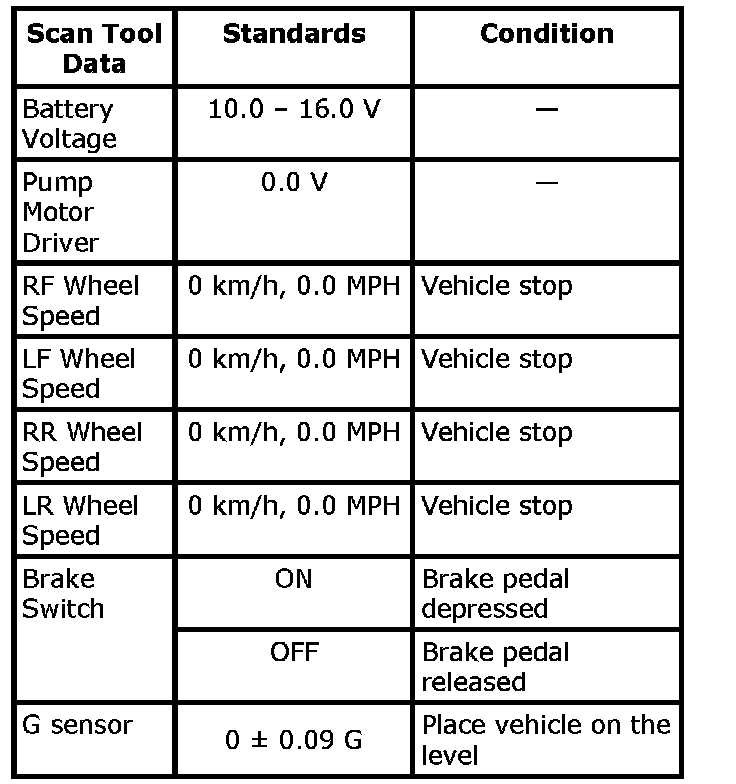 The parameter data below are values measured with the scan tool when the normally operating vehicle is under the following conditions. When taking measurements for comparison by using the scan tool, be sure to check that the vehicle is under the following conditions.