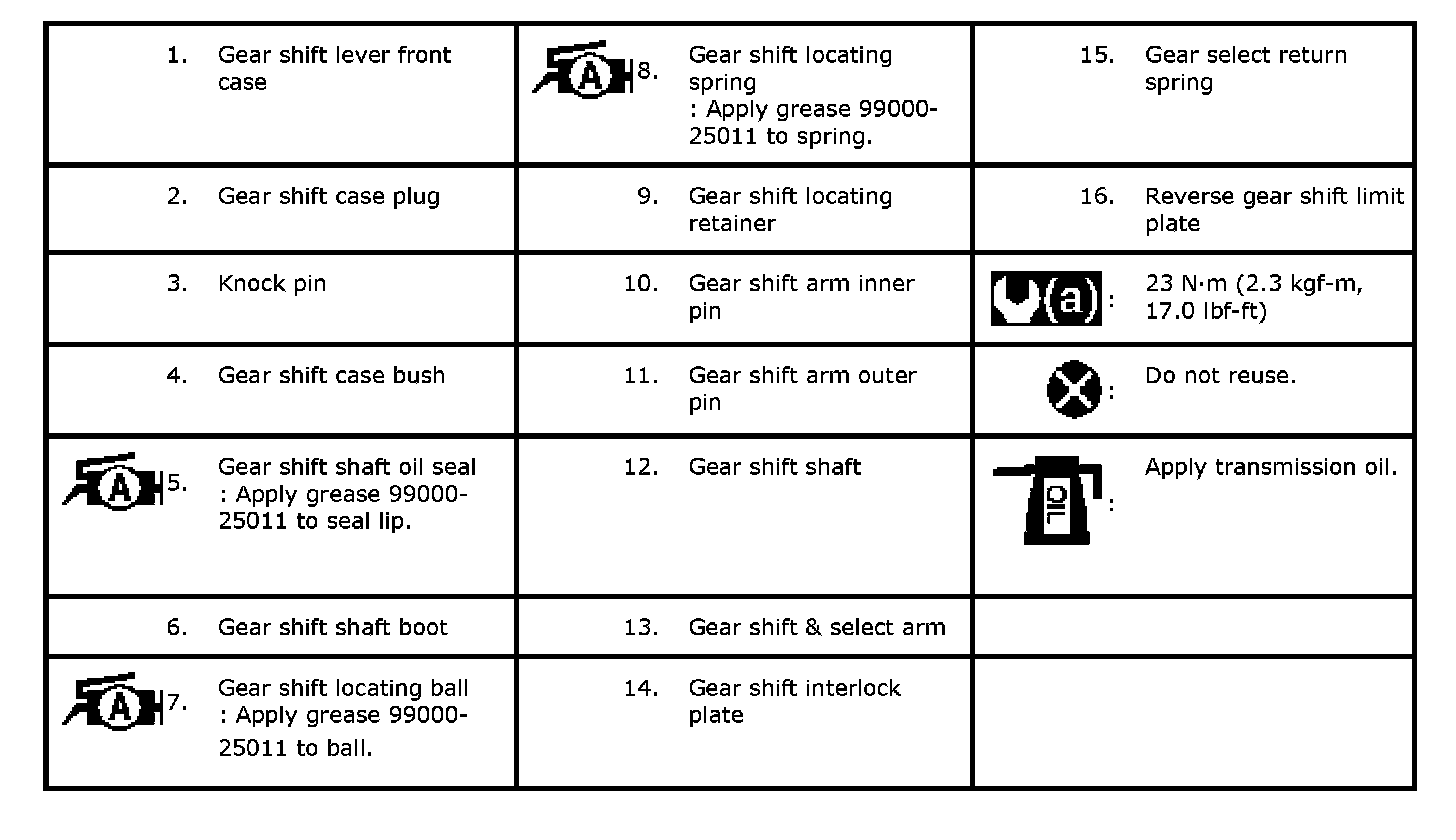 Gear Shift Lever Front Case Assembly Components