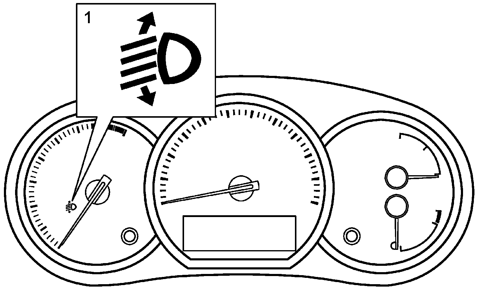 6. Confirm that headlight auto leveling warning light (1) flashes 3 times and turns off, which indicates that system initialization was completed properly. If it does not turn off after flashing 3 times, it means initialization was not successful. In such case, turn off ignition switch and perform Steps 1) to 6) again.