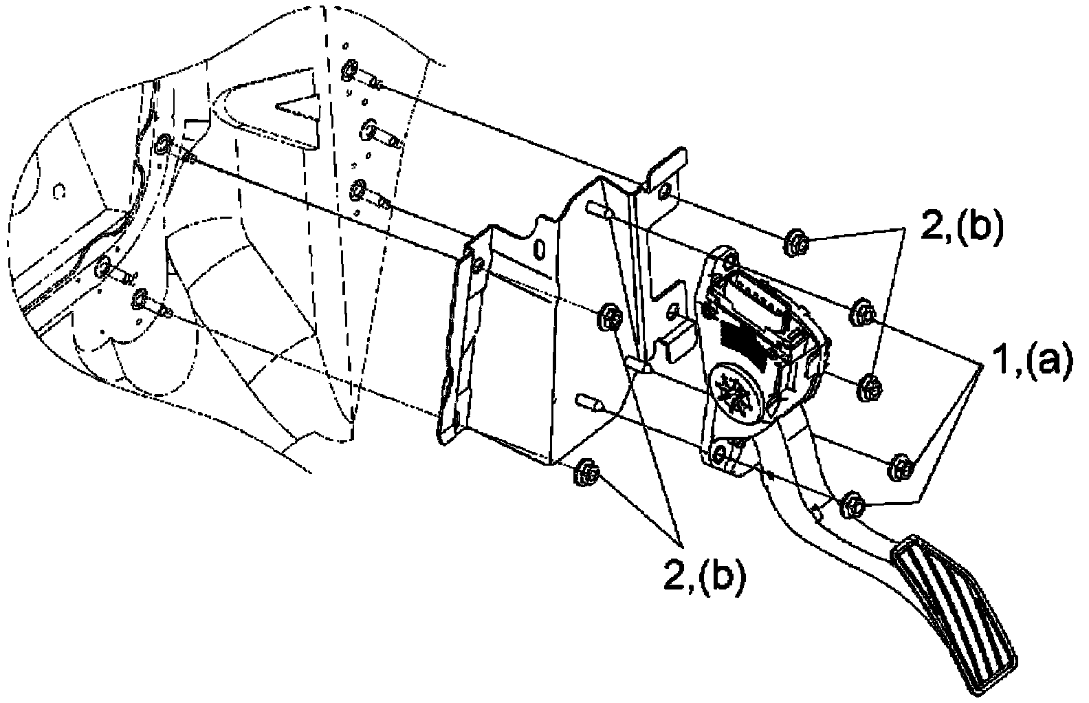 Accelerator pedal assembly bracket nut (b): 6.0 N.m (0.61 kg-m, 4.5 lbf-ft)