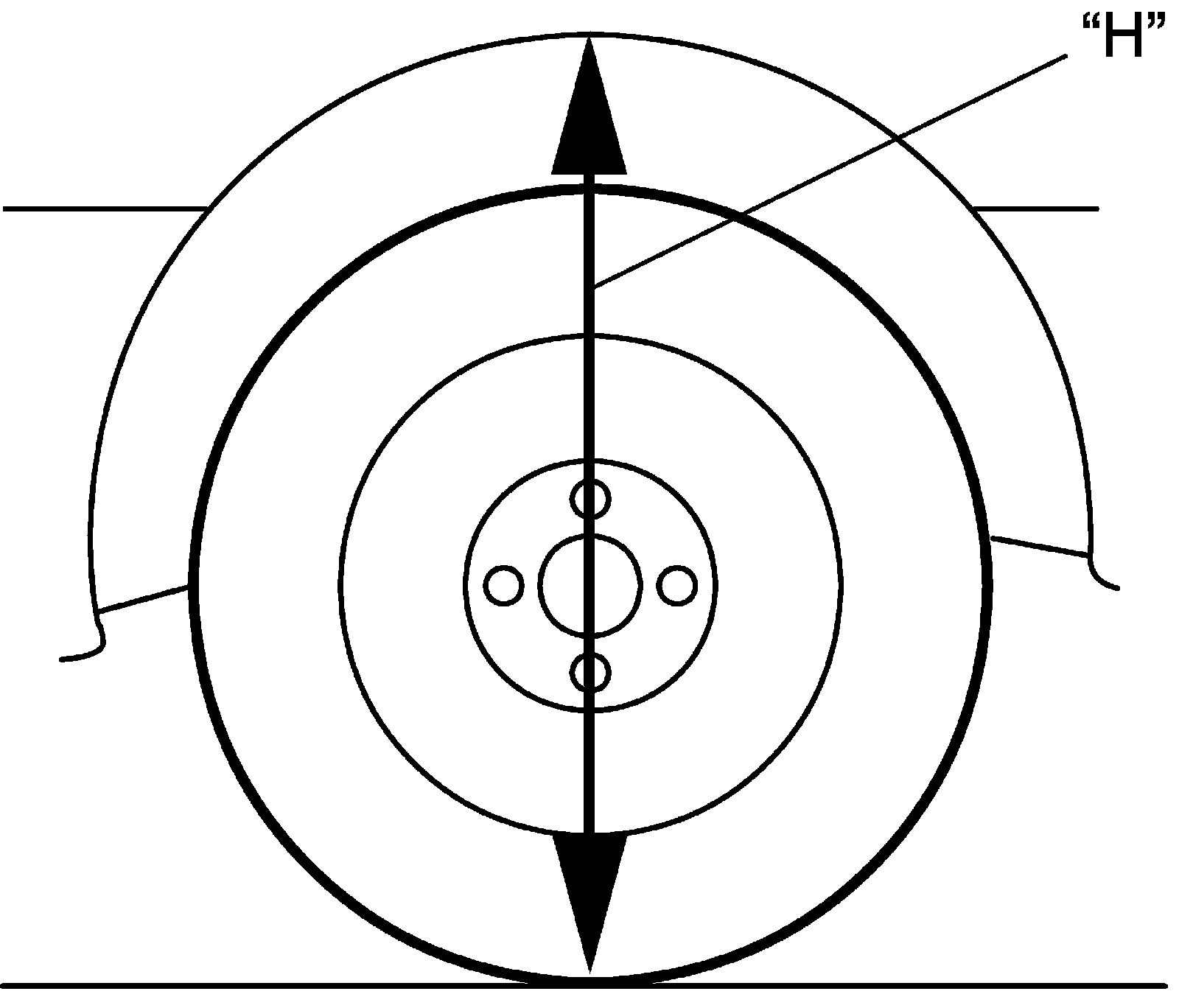 Right-to-left trim height ("H") difference should be within 15 mm (0.6 in.) with curb weight. (same with rear side.)