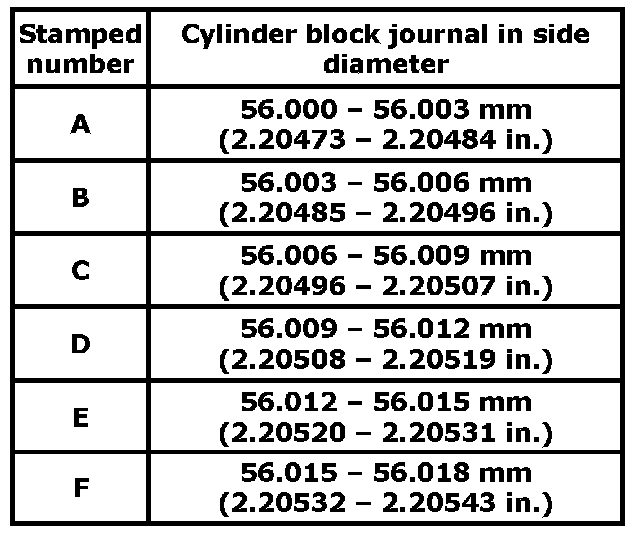 Stamped number 2 53.0061 - 53.0120 mm (2.08686 - 2.08708 in.)