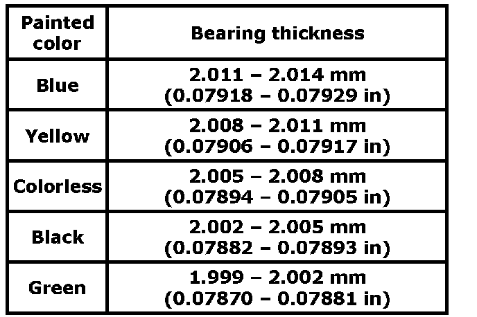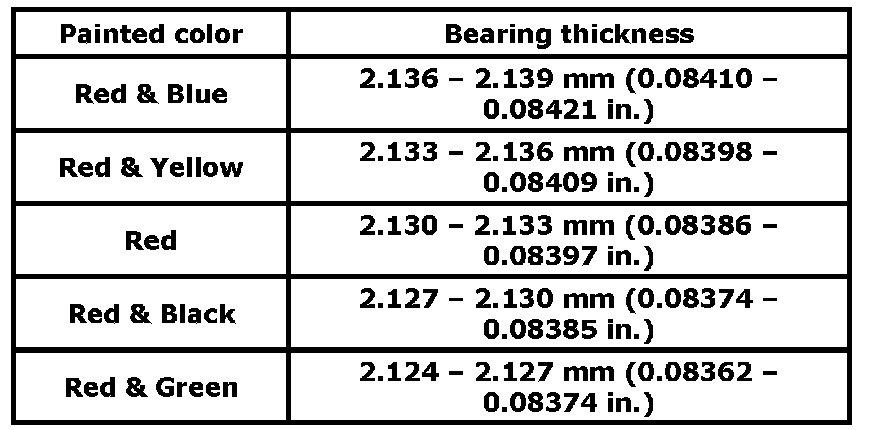 Oversize (0.125 mm, 0.00492 in.): 2.533 - 2.583 mm (0.0998 - 0.1016 in.)