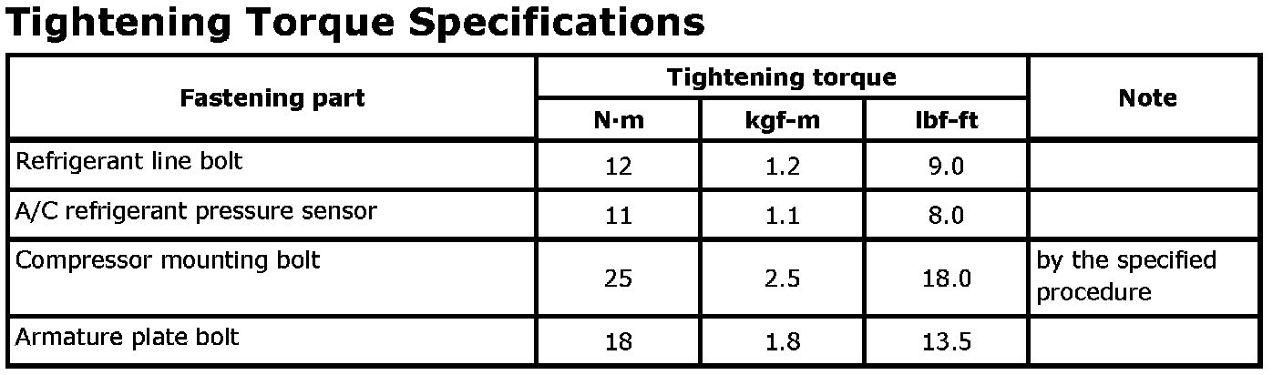 Tightening Torque Specifications
