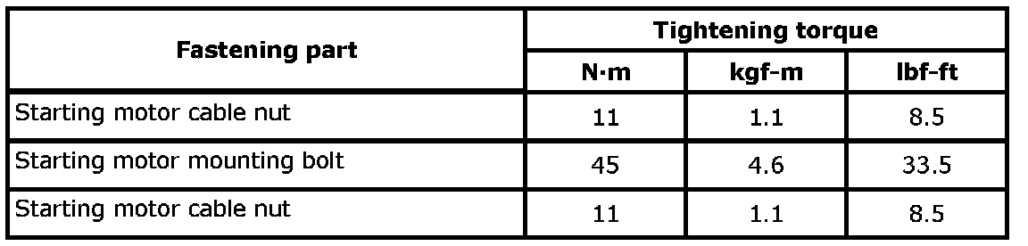 NOTE: The specified tightening torque is also described in the following. Starting Motor Components