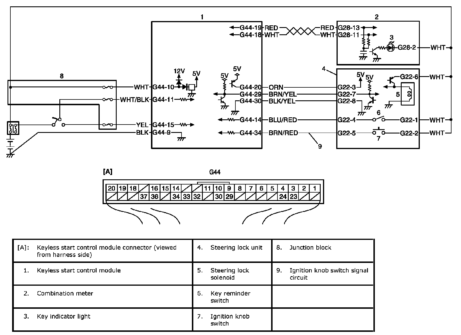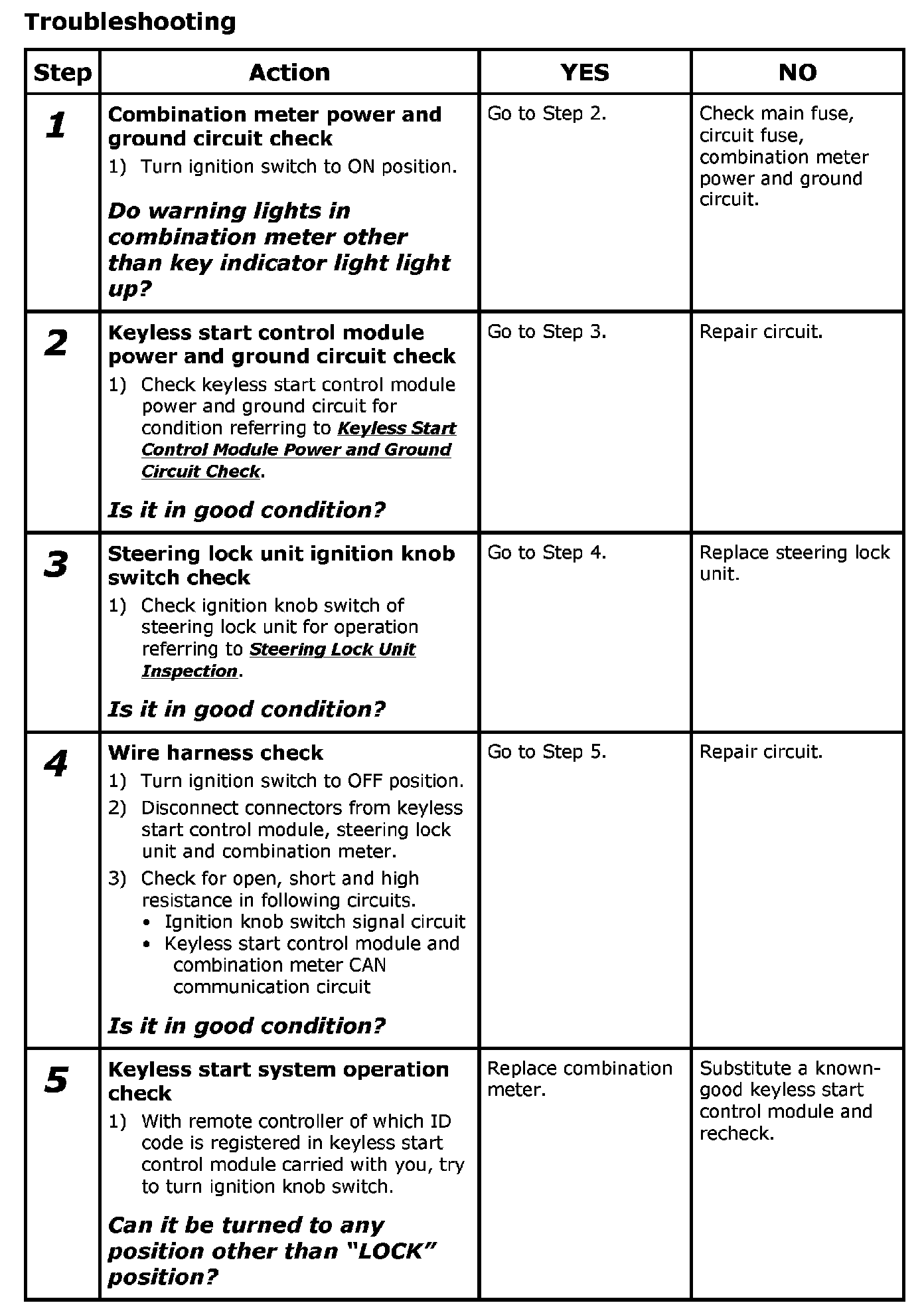 Key Indicator Light Circuit Check (Key Indicator Light Doesn't Light when Ignition Knob Switch Is Pushed)