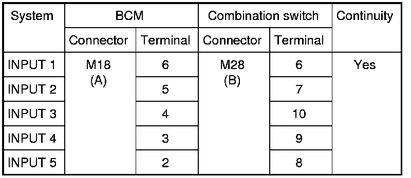 Combination Switch Input Circuit Check