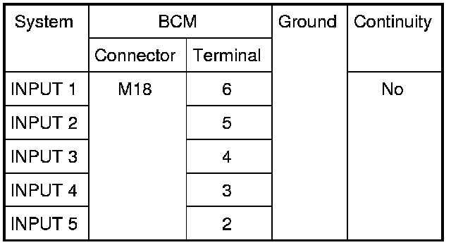 Check for continuity between BCM harness connector and ground.