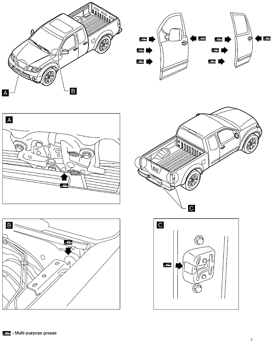 - Lubricate the locations shown.