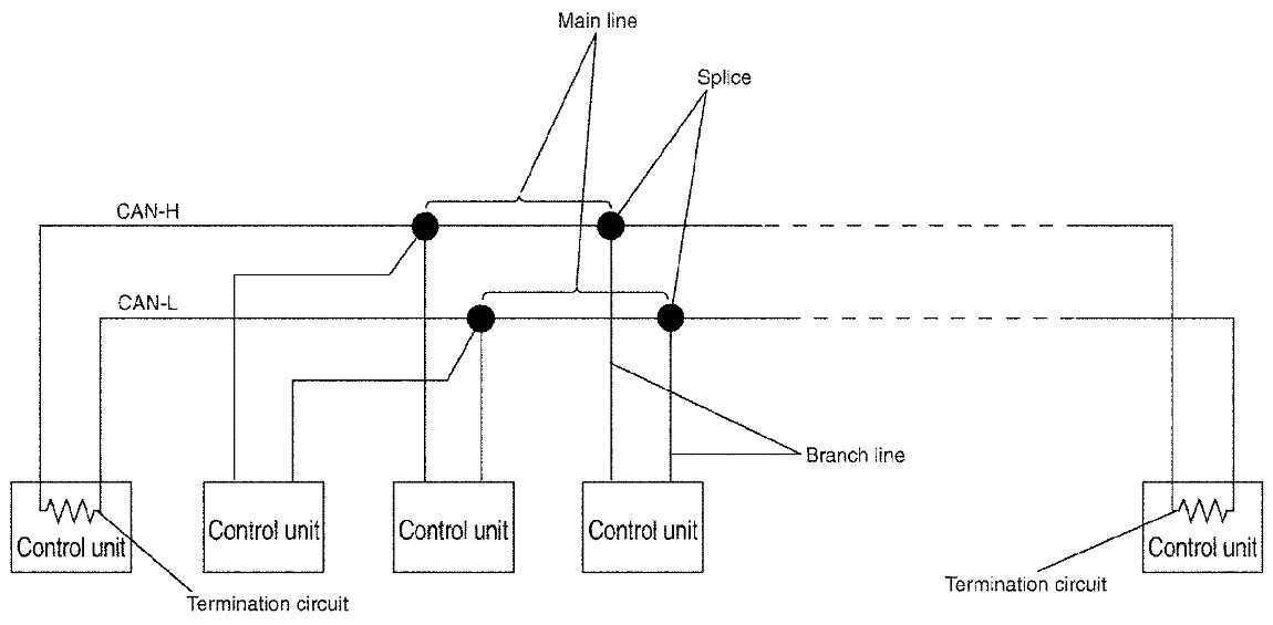 Each control unit passes an electric current to the termination circuits when transmitting CAN communication signal. The termination circuits produce an electrical potential difference between CAN-H and CAN-L. CAN communication system transmits and receives CAN communication signals by the potential difference.