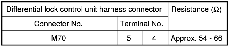 2 Check the resistance between the differential lock control unit harness connector terminals.