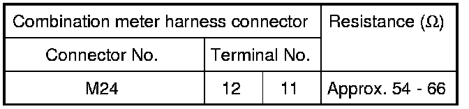 2 Check the resistance between the combination meter harness connector terminals.