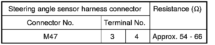2 Check the resistance between the steering angle sensor harness connector terminals.