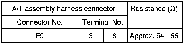 2 Check the resistance between the A/T assembly harness connector terminals.