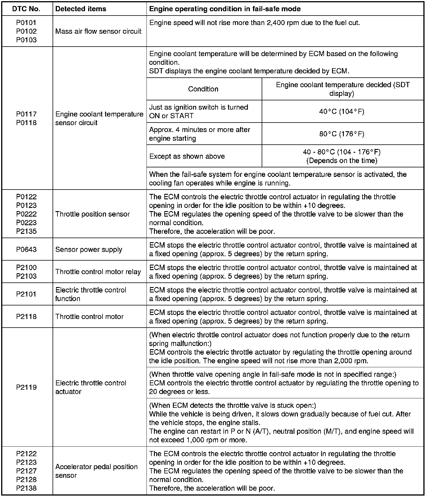 Therefore, when electrical controlled throttle and part of ECM related diagnoses are continuously detected as NG for 5 trips, ECM warns the driver that engine control system malfunctions and MIL circuit is open by means of operating the fail-safe function.