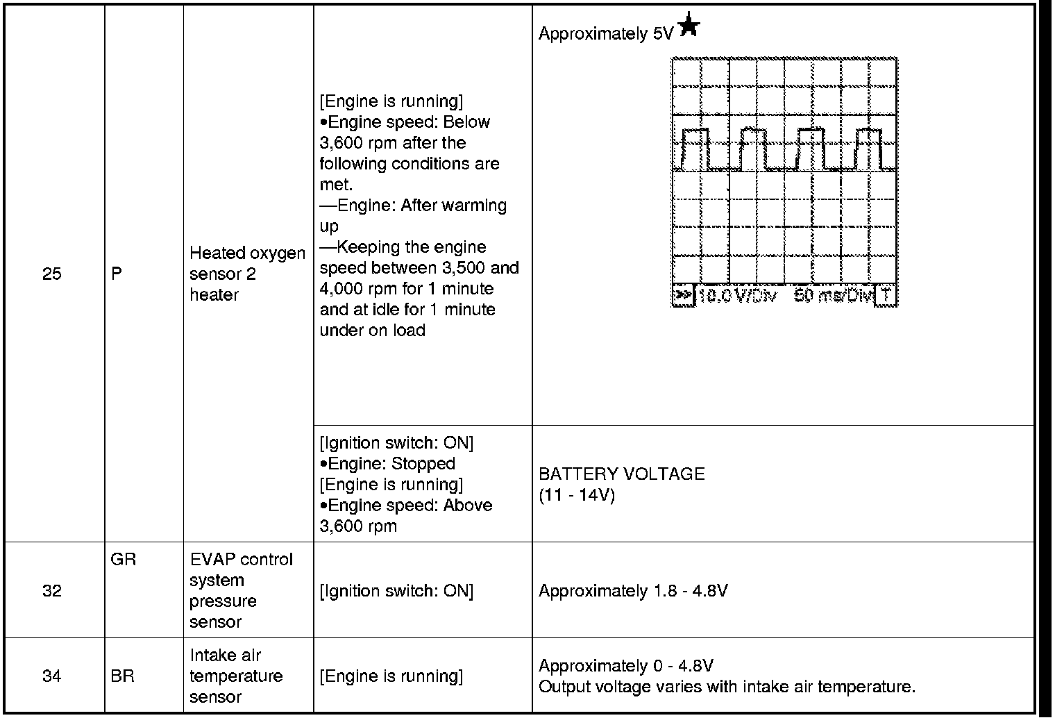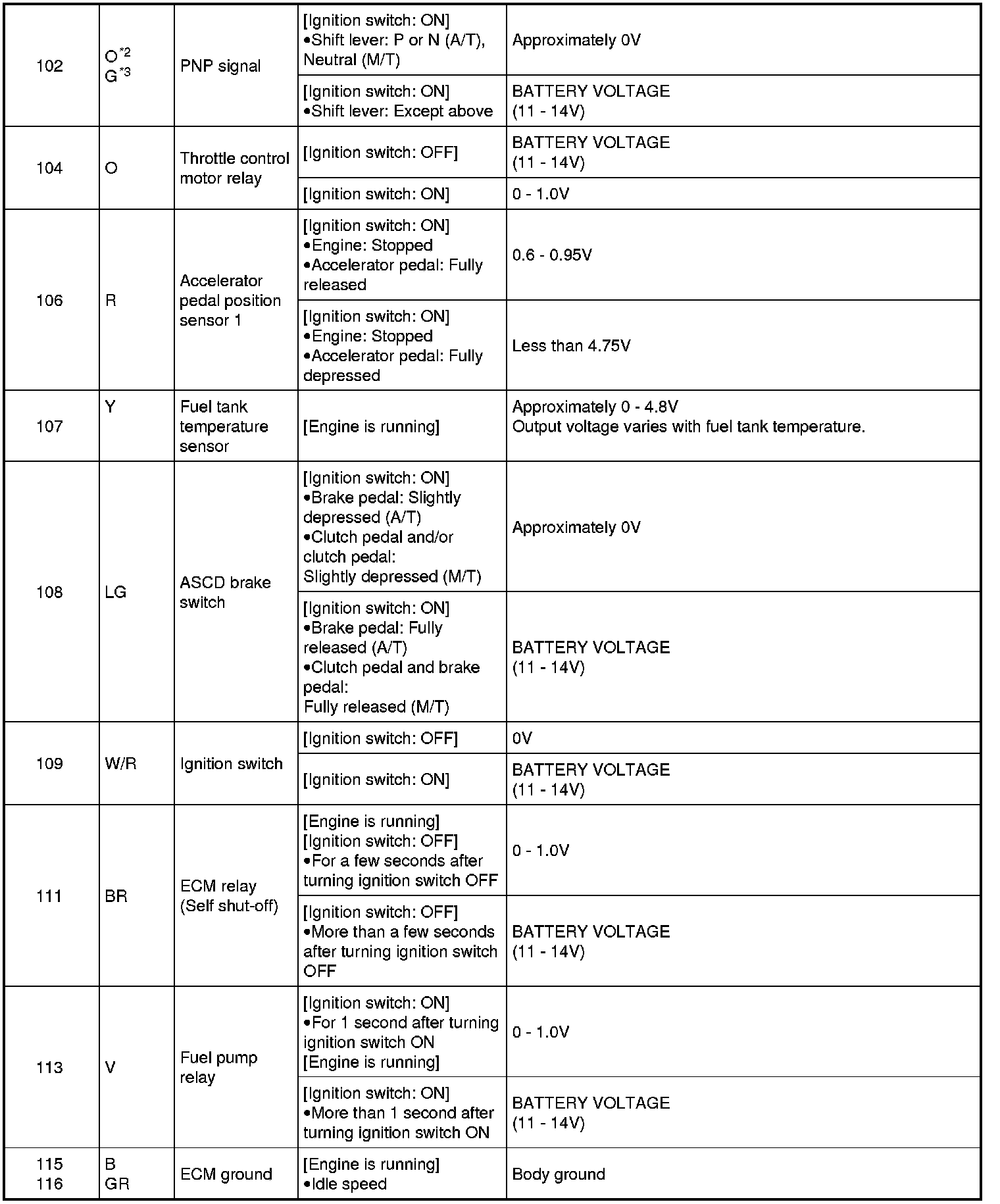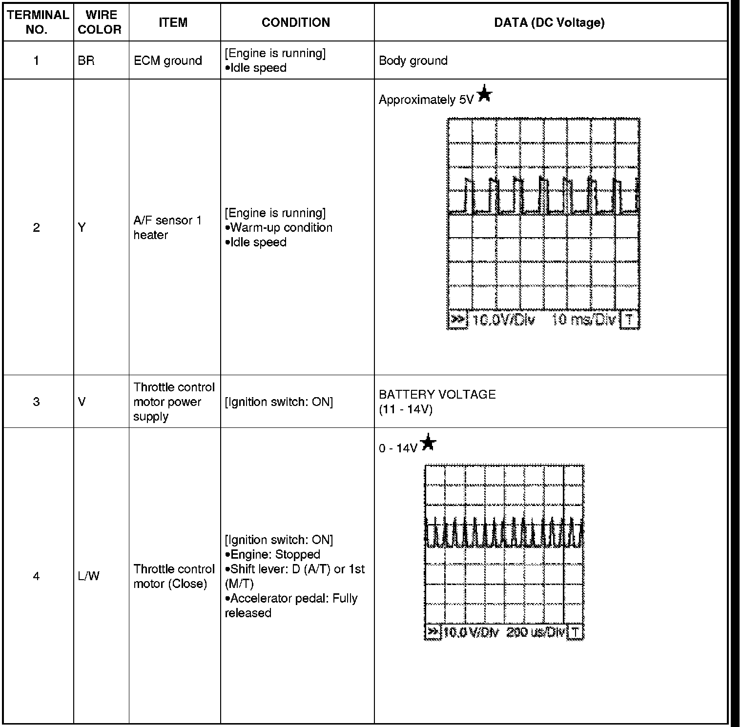 Never use ECM ground terminals when measuring input/output voltage. Doing so may result in damage to the ECM's transistor. Use a ground other than ECM terminals, such as the ground.