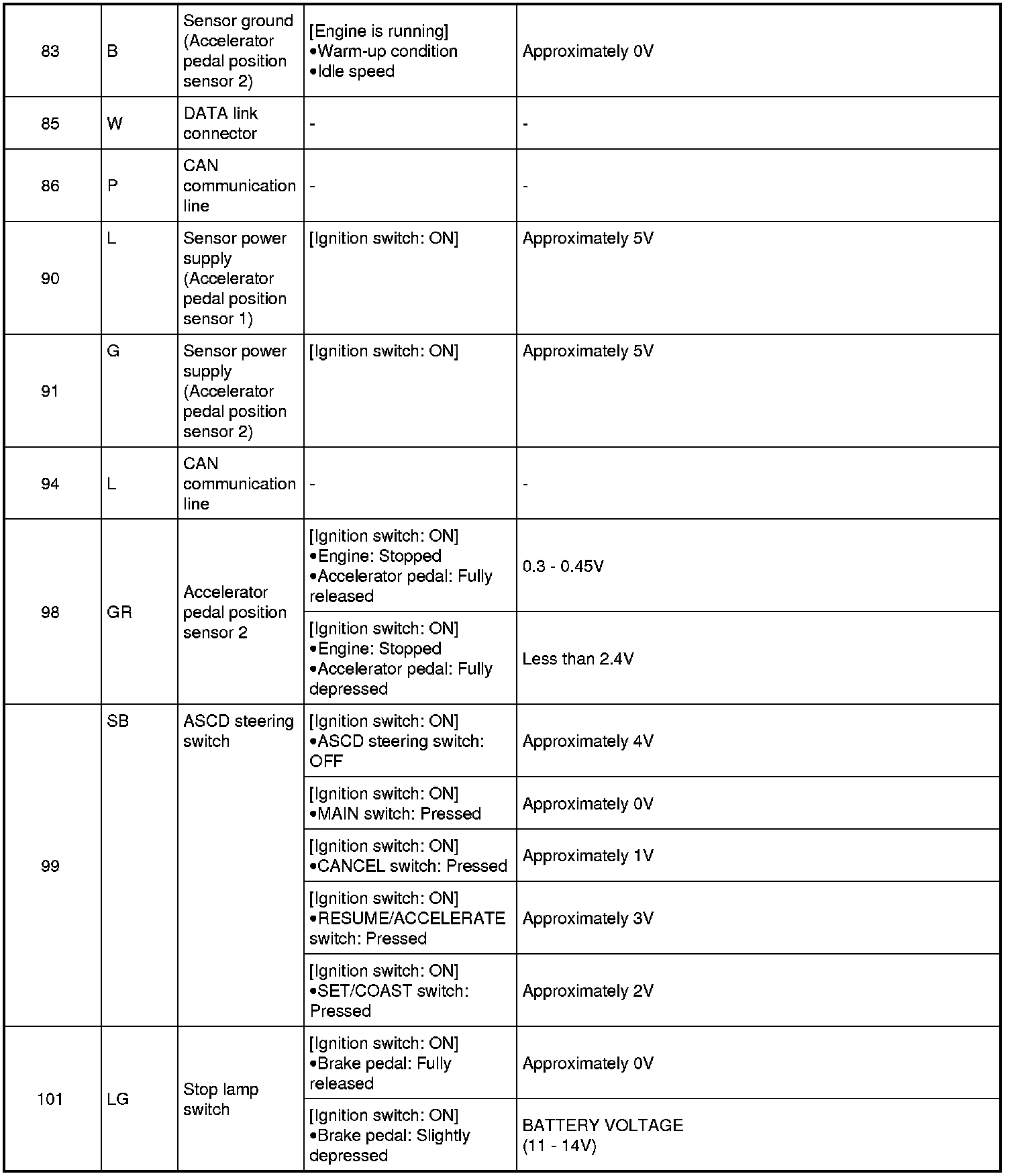 Specification data are reference values and are measured between each terminal and ground.
