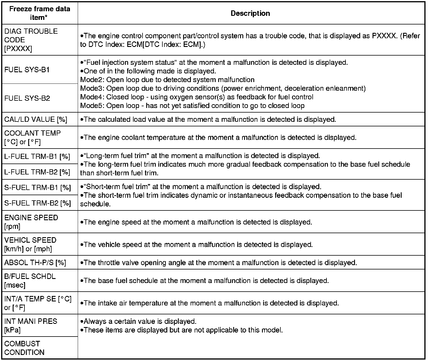 Regarding items of DTC and 1st trip DTC, refer to [DTC Index: ECM] DTC Index ECM.)