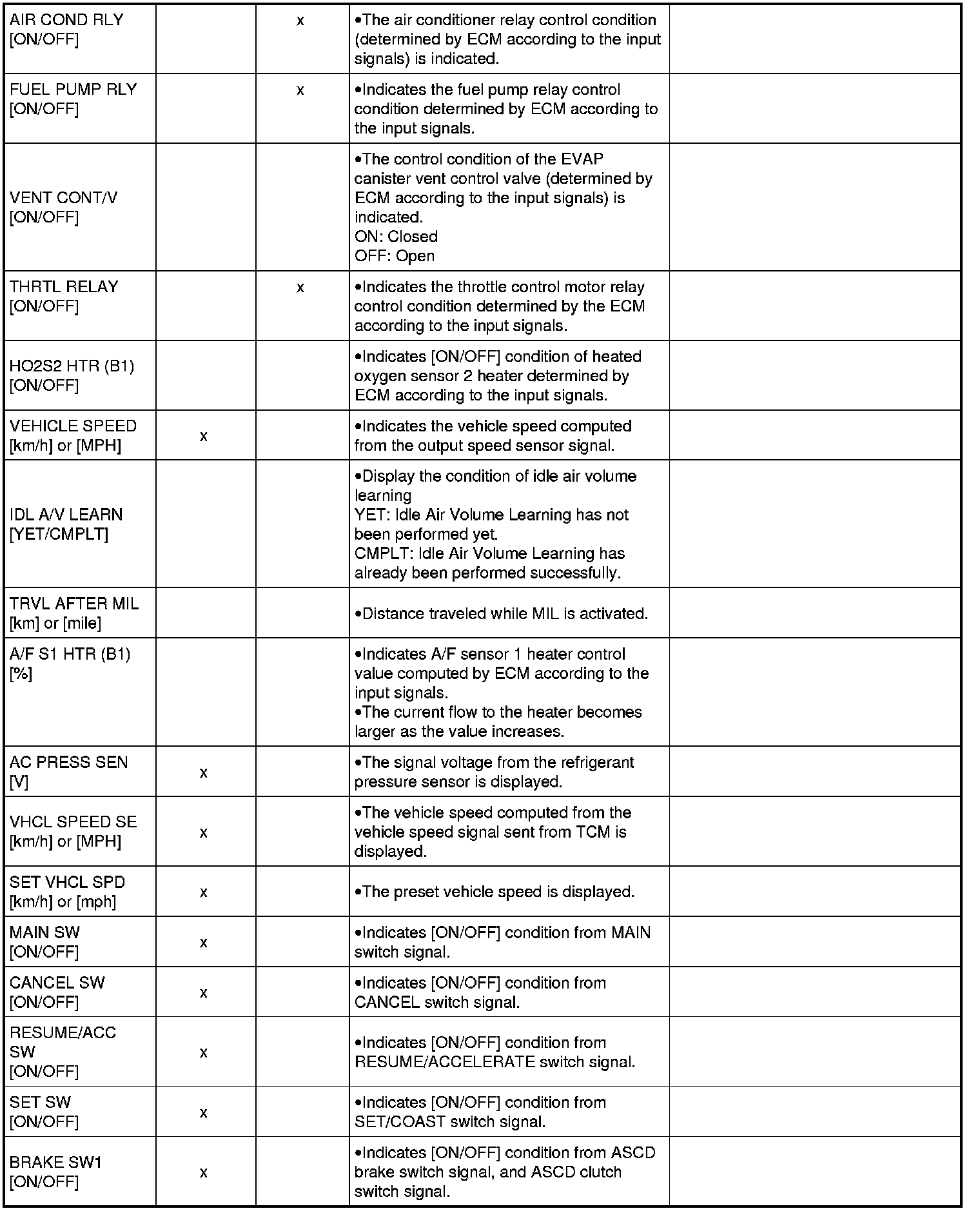 - If "TIME" is neither "0" nor "1t", the DTC occurred in the past and ECM shows the number of times the vehicle has been driven since the last detection of the DTC.