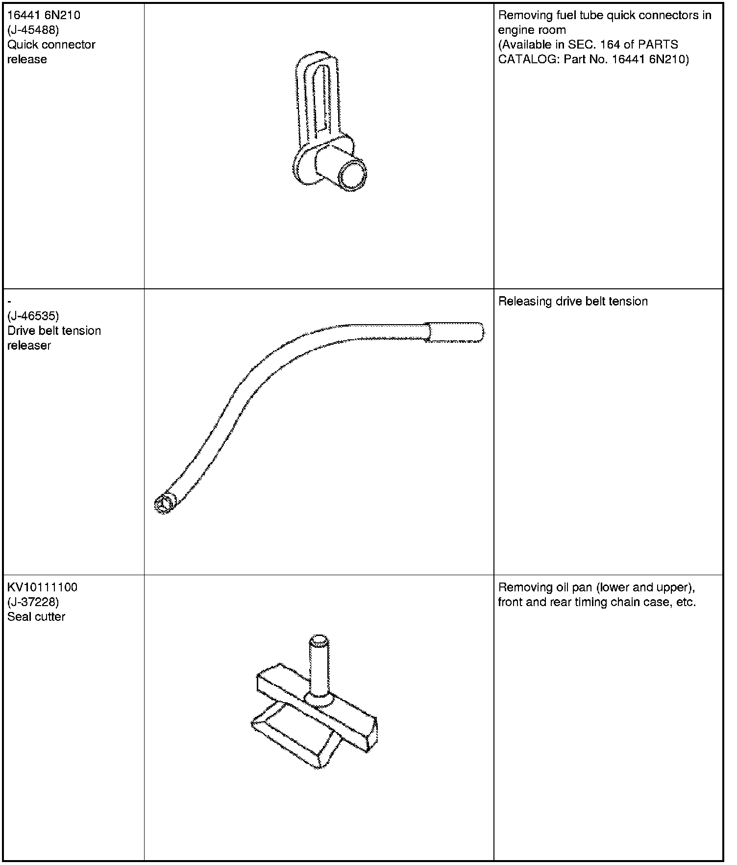 The actual shapes of Kent-Moore tools may differ from those of special service tools illustrated here.