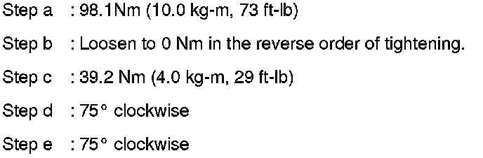- Cylinder head bolts are tightened by plastic zone tightening method. Whenever the size difference between (d1) and (d2) exceeds the limit, replace them with a new one.