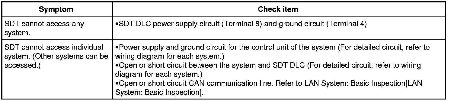 If the SDT cannot diagnose the system properly, check the following items.