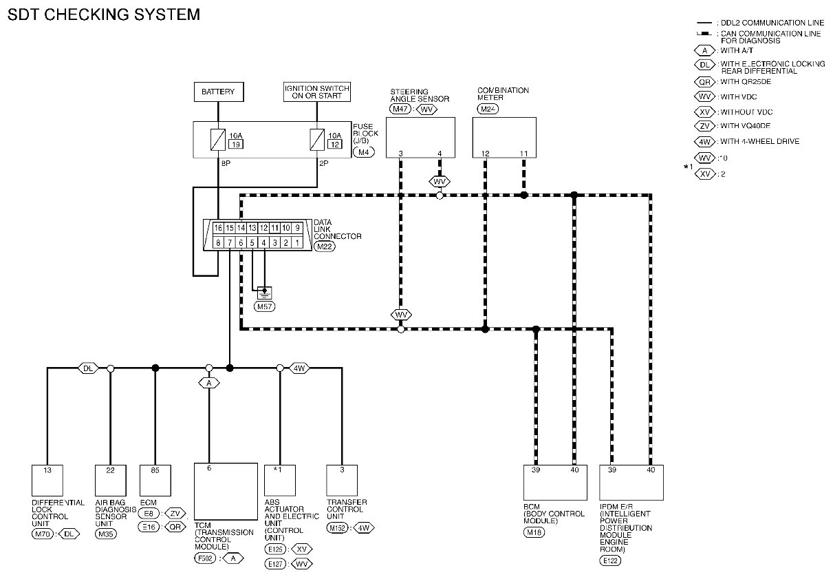 The CAN and DDL2 circuits from DLC pins 6, 7 and 14 may be connected to more than one system. A short in any circuit connected to a control unit in one system may affect SDT access to other systems.