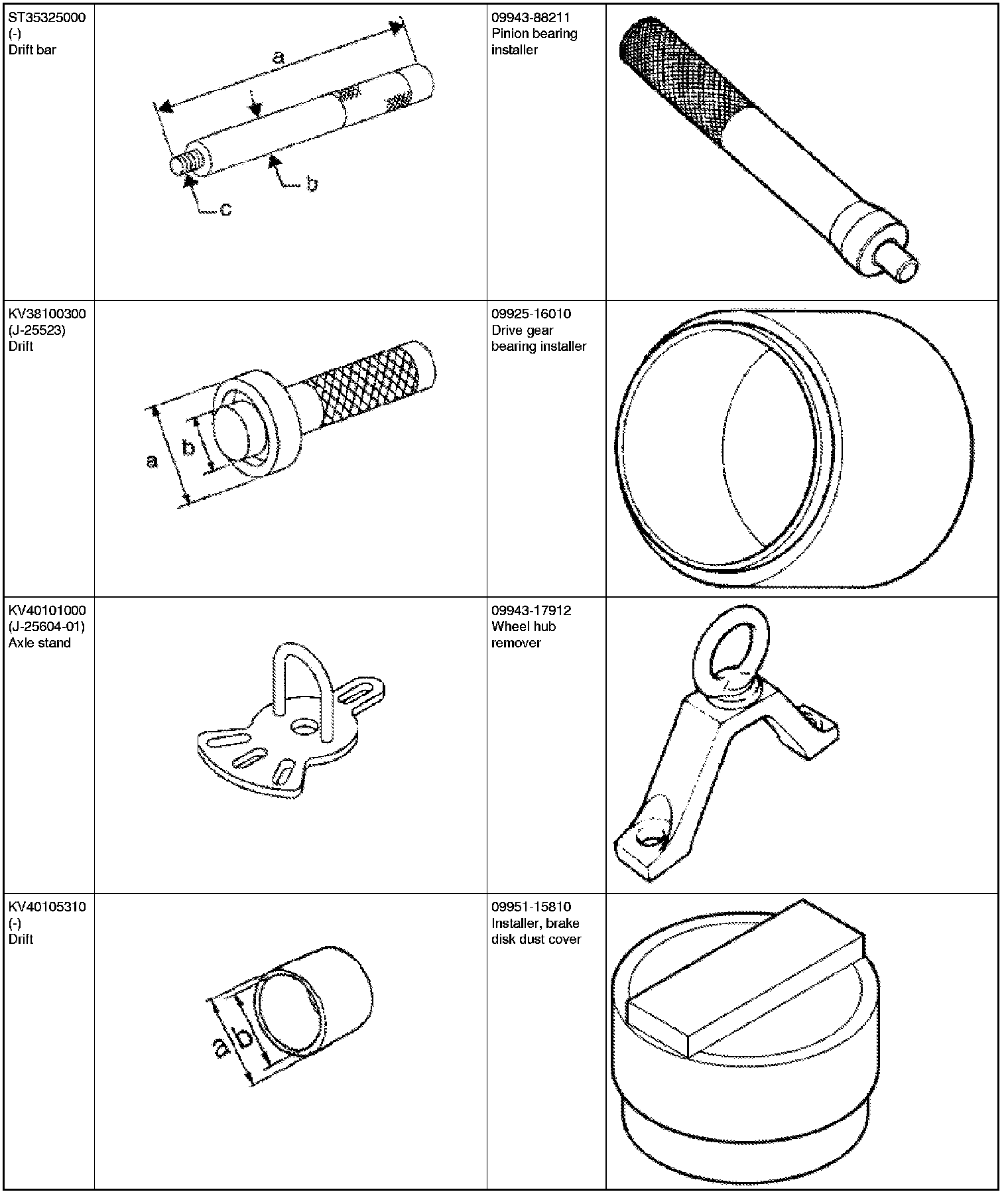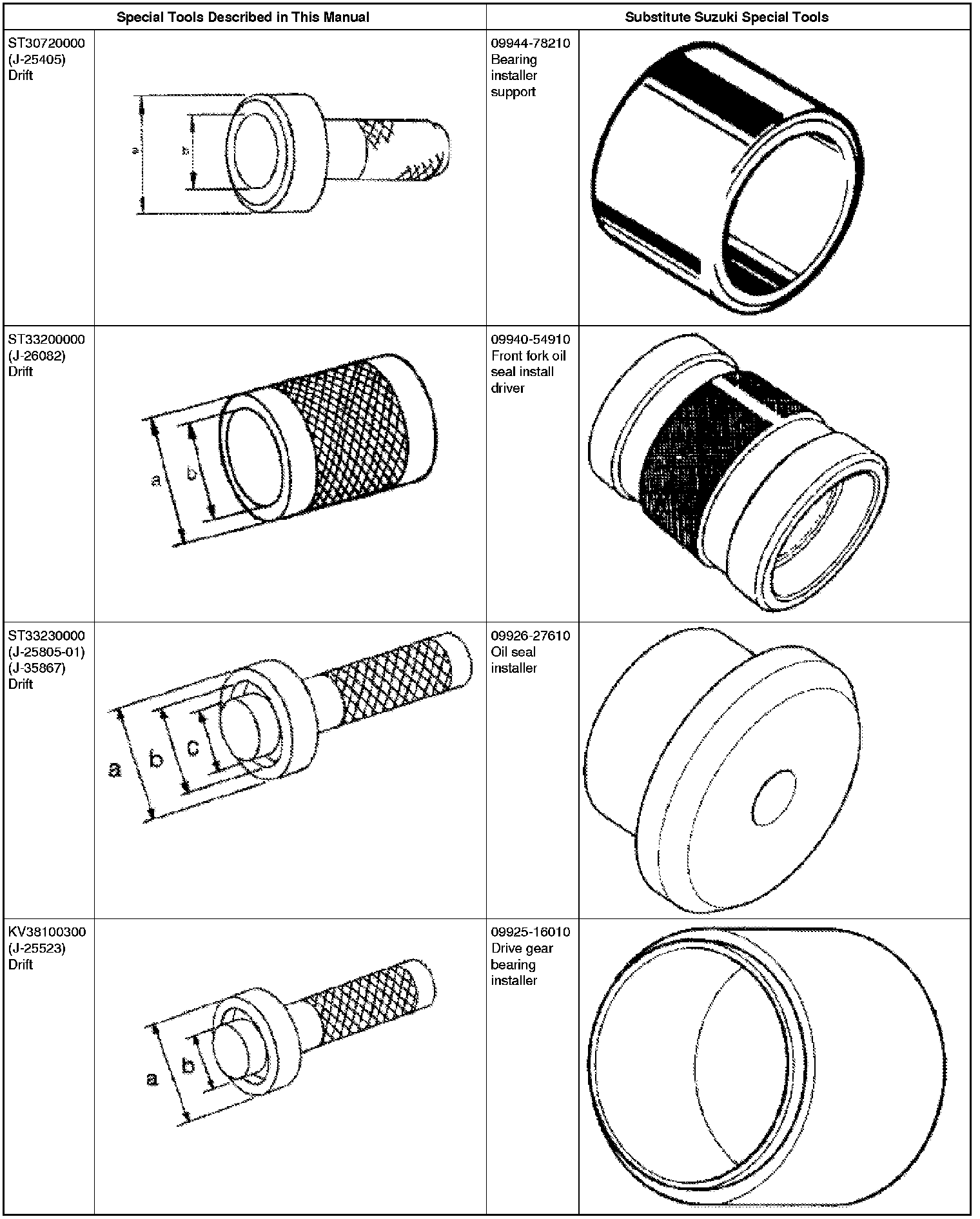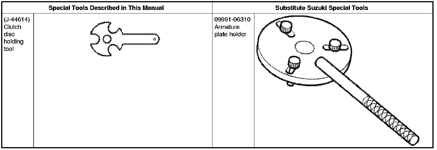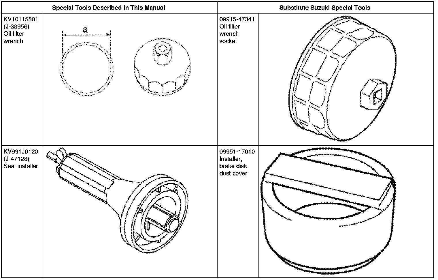 The substitute special tools below are usable instead of the special tools described in this manual.